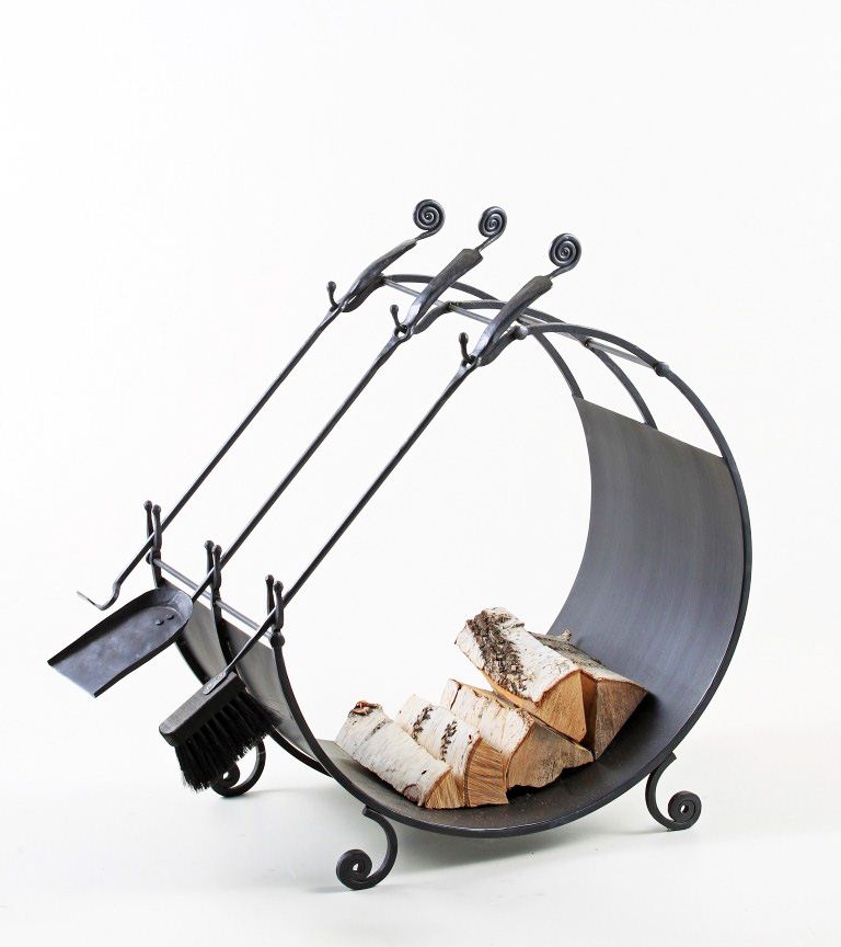 Kovaný koš na dřevo s krbovým nářadím DOSTAVNÍK